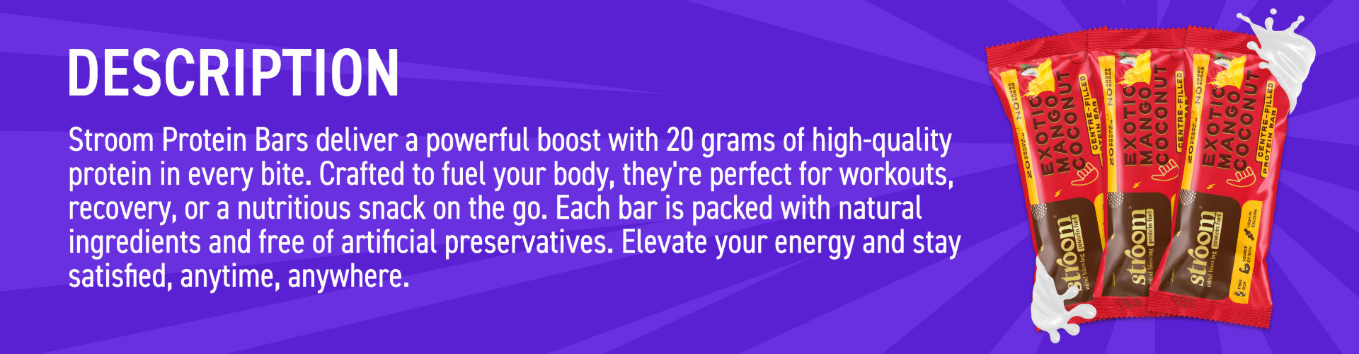 Stroom bars are made to provide you with sustained energy for a period of two to three hours and can be eaten at any time throughout the day. It also works great as a quick snack for any hunger cravings one might have.